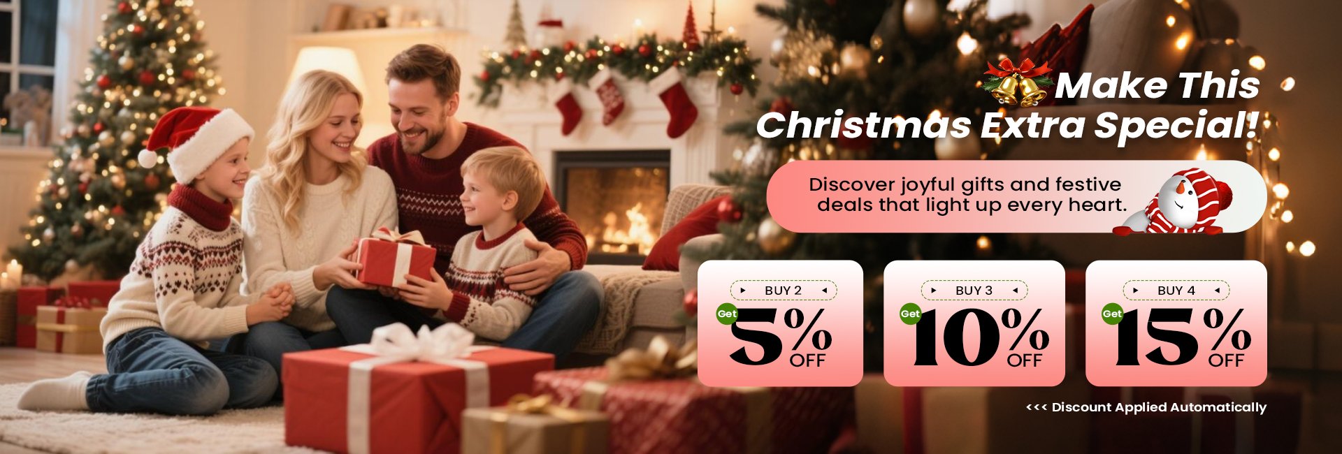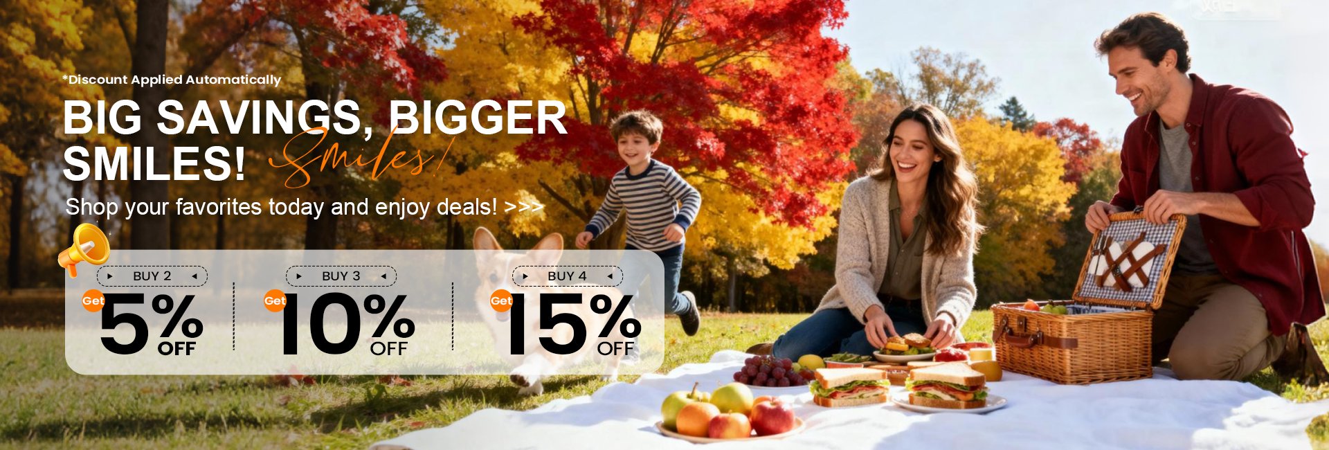 2 items -5% | 3 items -10% | 4 items -15%